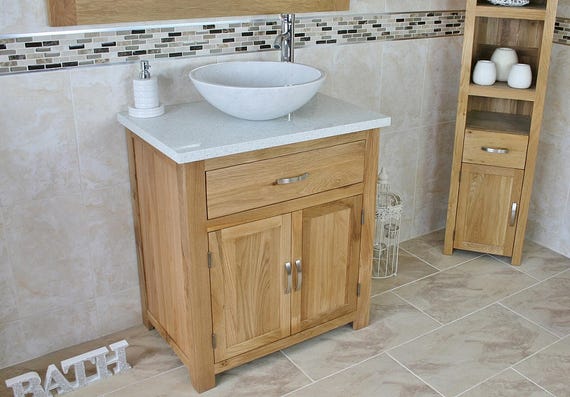 Bathroom Vanity Unit Solid Oak With White Quartz Top White Or Grey Marble Basin Choice 502wqsbc Etsy Uk